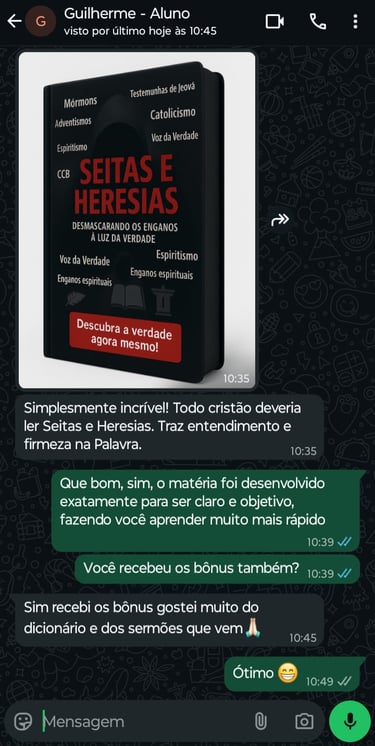 ➡️ O material foi pensado para ser direto, prático e objetivo. Não é um livro cheio de teorias complexas, mas um guia que você pode ler no seu ritmo e já aplicar no dia a dia. O perigo das heresias não espera, então investir alguns minutos agora vai evitar anos de engano depois.
